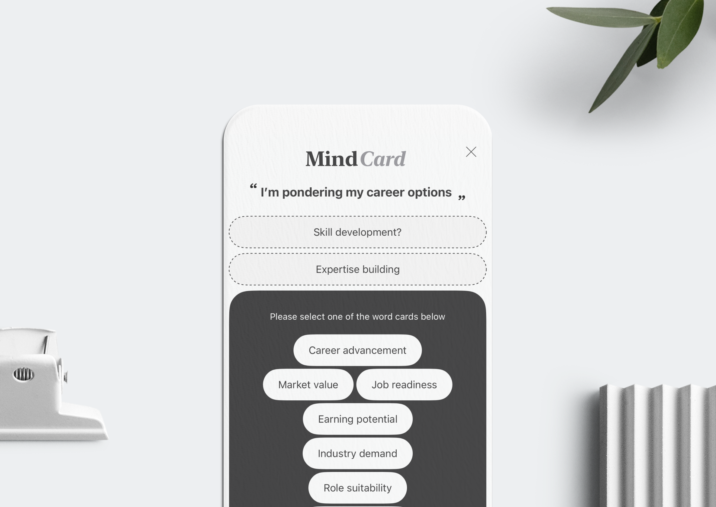 This sparked the idea for MindCard. When you record a worry or a dilemma, the app presents a series of related keywords. By forcing you to choose between them quickly, MindCard bypasses your hesitation and helps you pinpoint the actual root of your anxiety. It’s about uncovering the answer that was already inside you, waiting to be found.